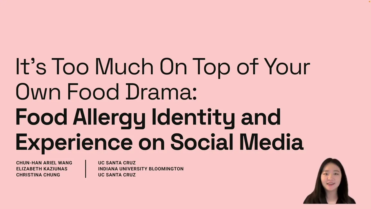 This project explores how people with food allergies use social media to shape their health habits, identities, and social connections. Through 18 interviews with content creators and consumers who live with food allergies, we found that social media can both empower and stigmatize, influencing how individuals express themselves and manage their visibility online.