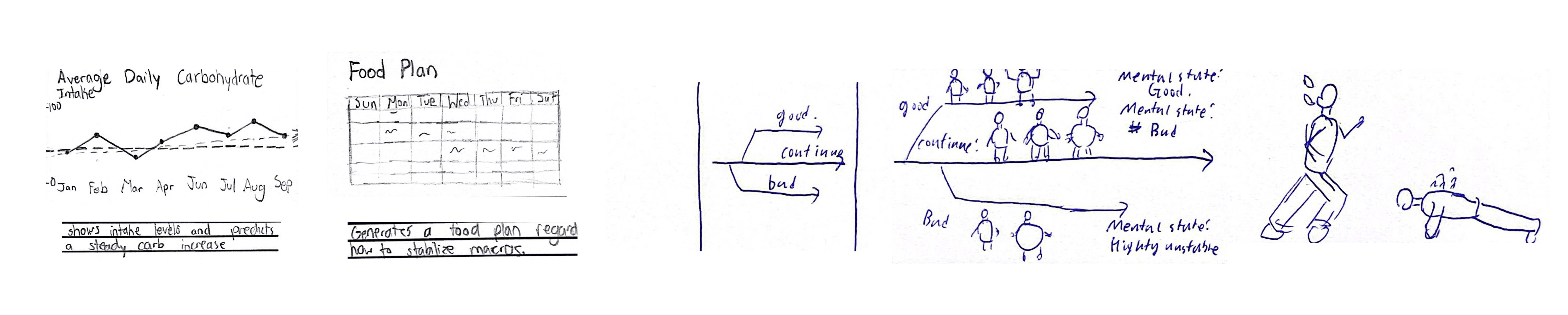 One of the clearest tensions appeared around health reflection. Many teens imagined mirrors that tracked nutrition and showed them a corresponding food plan (sketches on the left of the image), projected future selves, or visualized the consequences of their habits (predicted three versions of self based on everyday active level). But they also worried that these tools could become overwhelming, obsessive, or harmful.